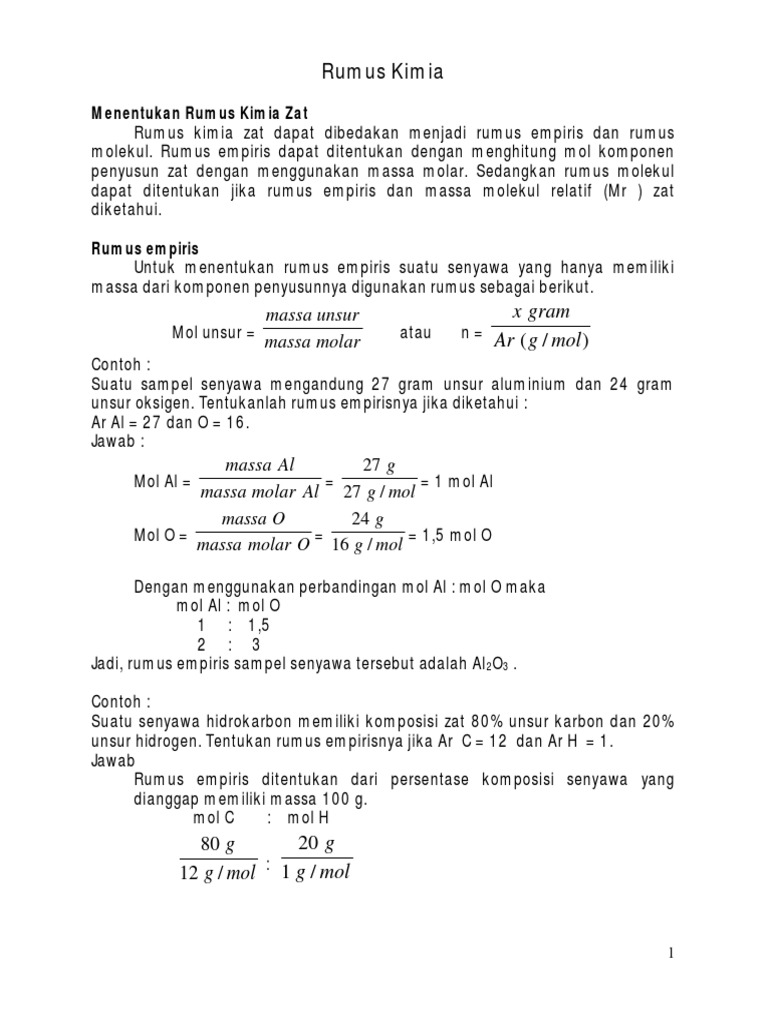 Satu mol didefinisikan sebagai jumlah zat yang memiliki kandungan partikel zat itu sejumlah atom yang ada dalam 12 000 g atom karbon 12. Massa molar al 27 gram mol. Untuk unsur yang partikelnya berupa molekul dan senyawa maka massa molar sama dengan mr massa molekul relatif dalam satuan gram mol. Massa molar fe 56 gr mol.
